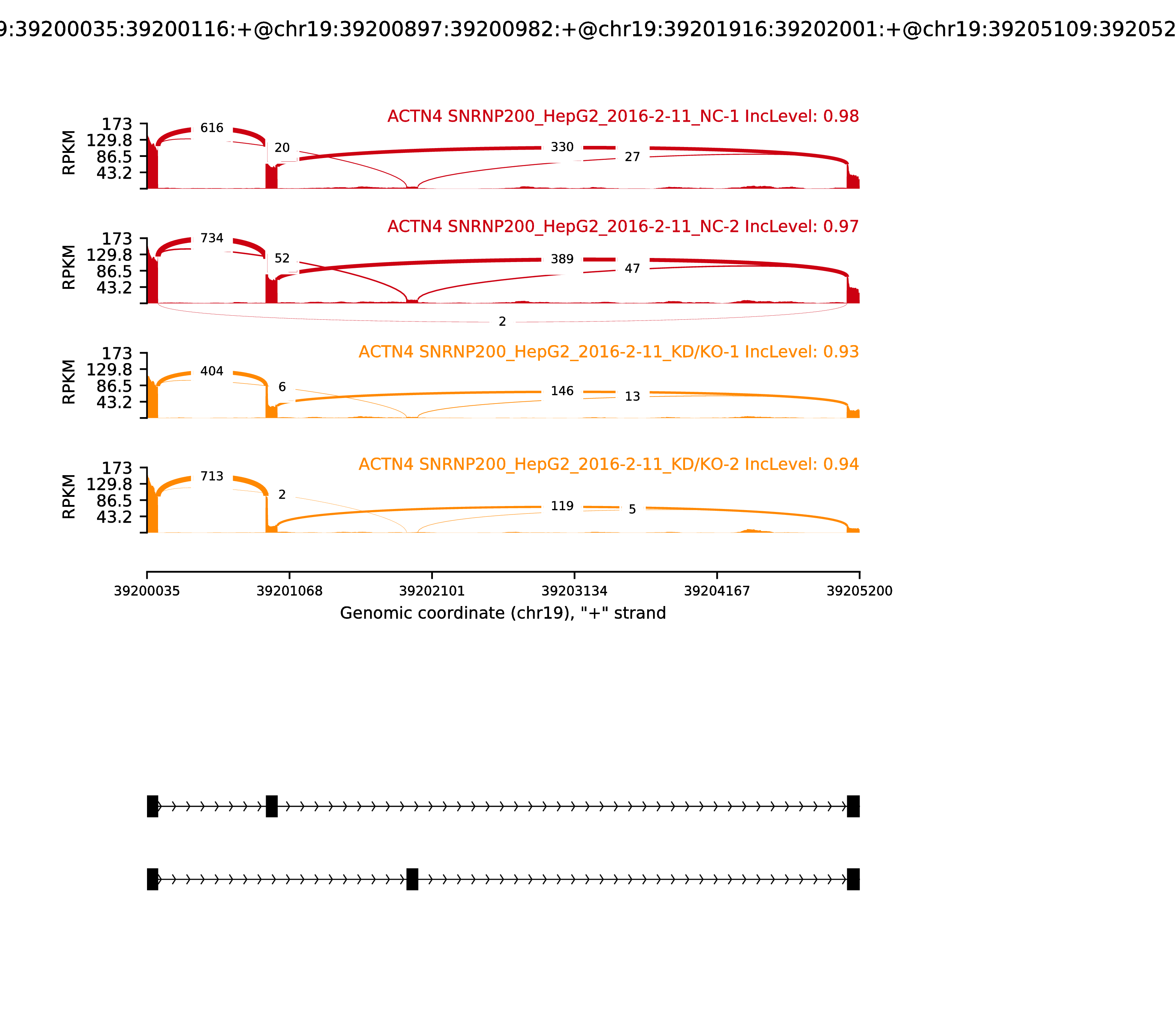 | chr4 | 39552175 | T | C | 0.00010 | UGDH-AS1,SMIM14 | +,- | FALSE | AluSx | SINE,Alu |