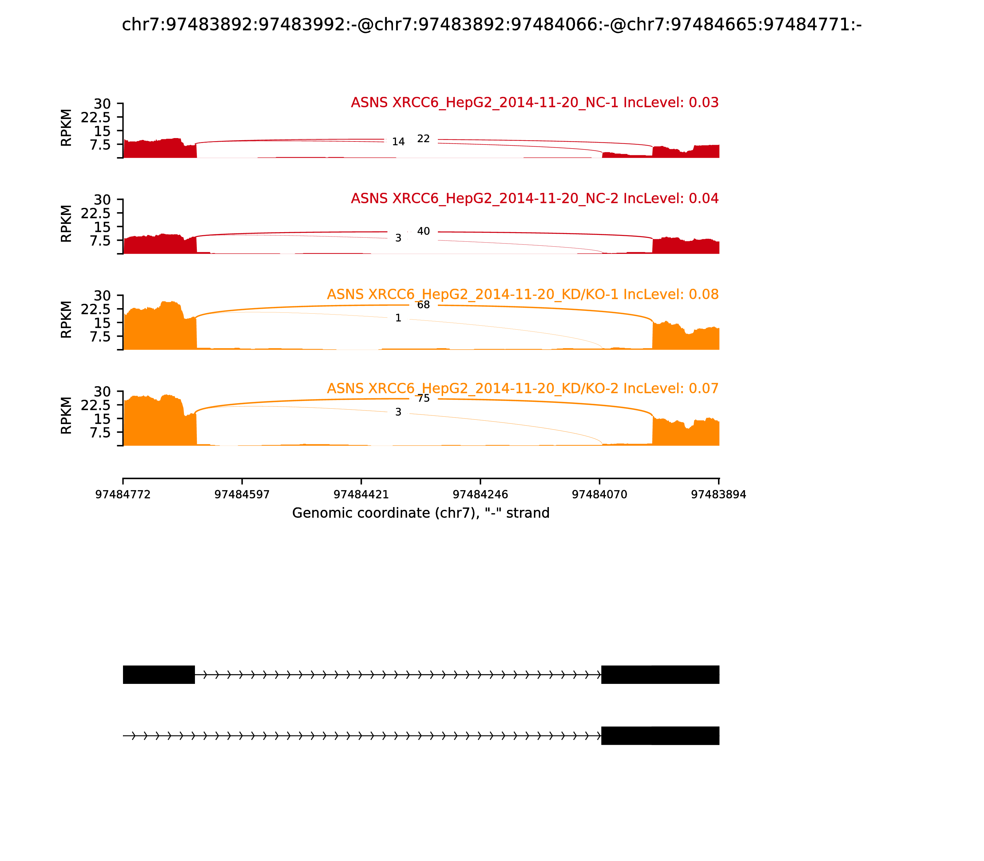 | chr17 | 263417 | C | T | 0.00675 | LOC105371430,C17orf97 | +,- | FALSE | ||