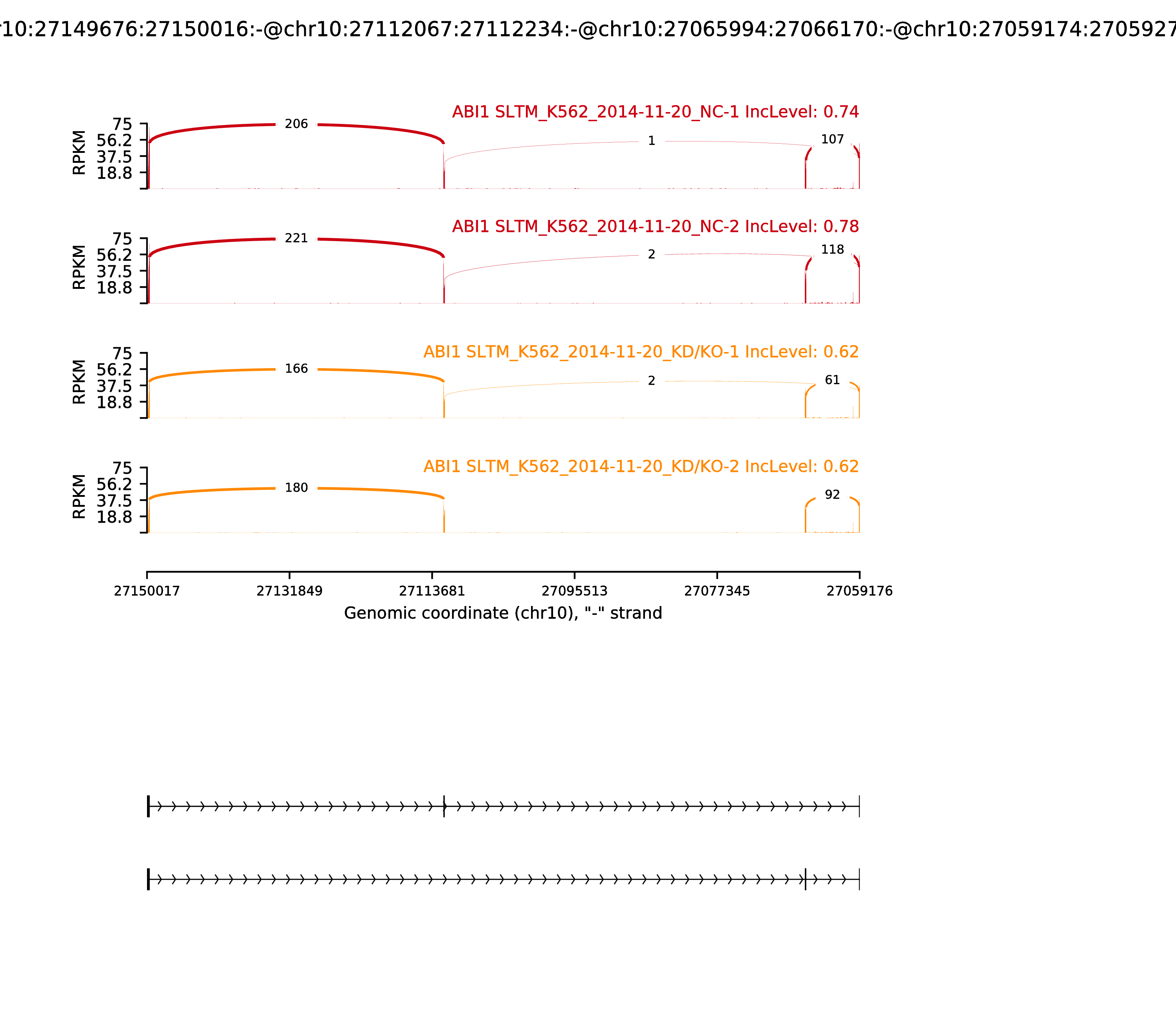 | chr1 | 27733305 | A | C | 0.00374 | WASF2 | - | FALSE | | |