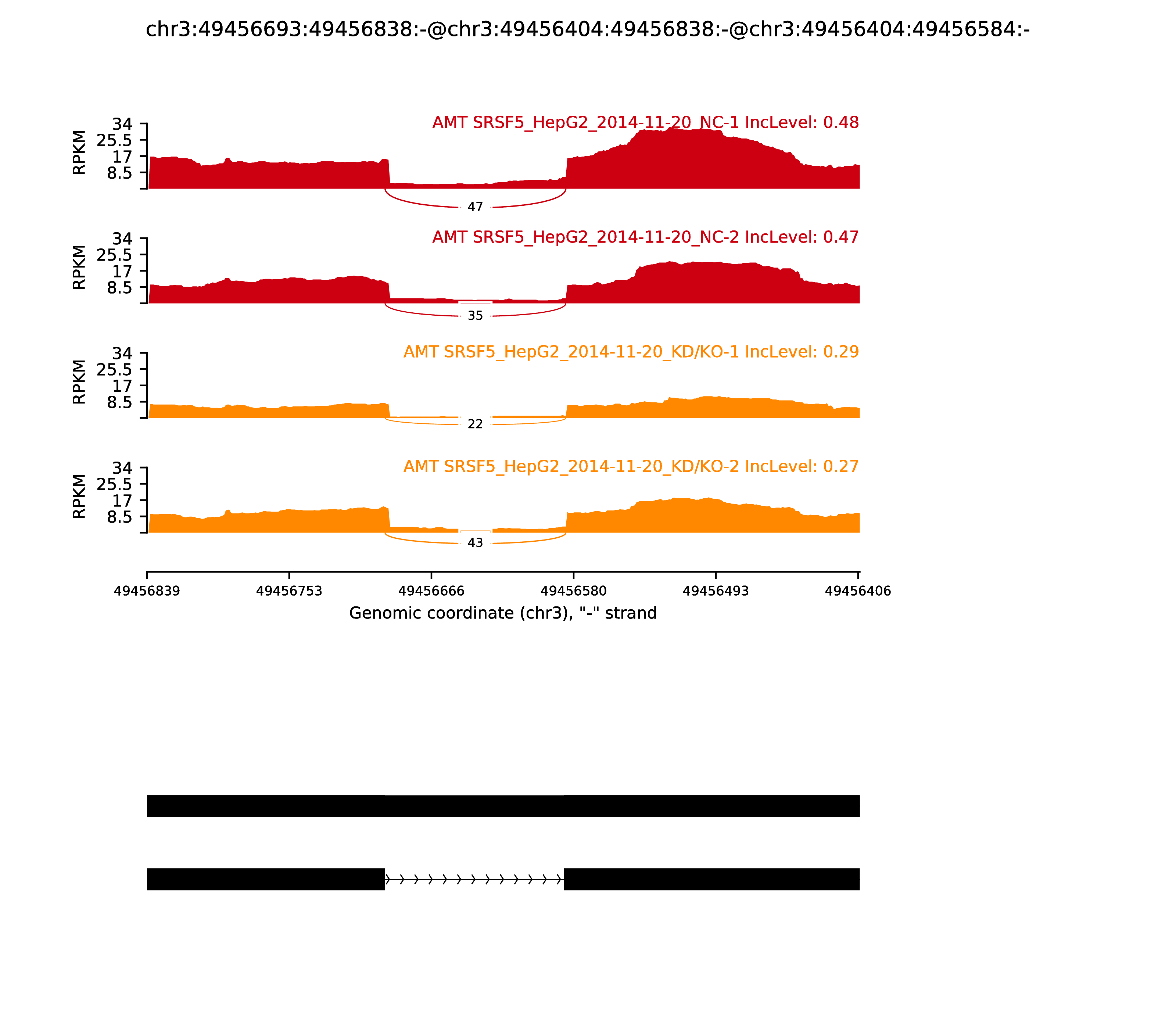 | chr3 | 42636141 | G | A | 0.00224 | SEC22C,SS18L2 | +,- | FALSE | ||