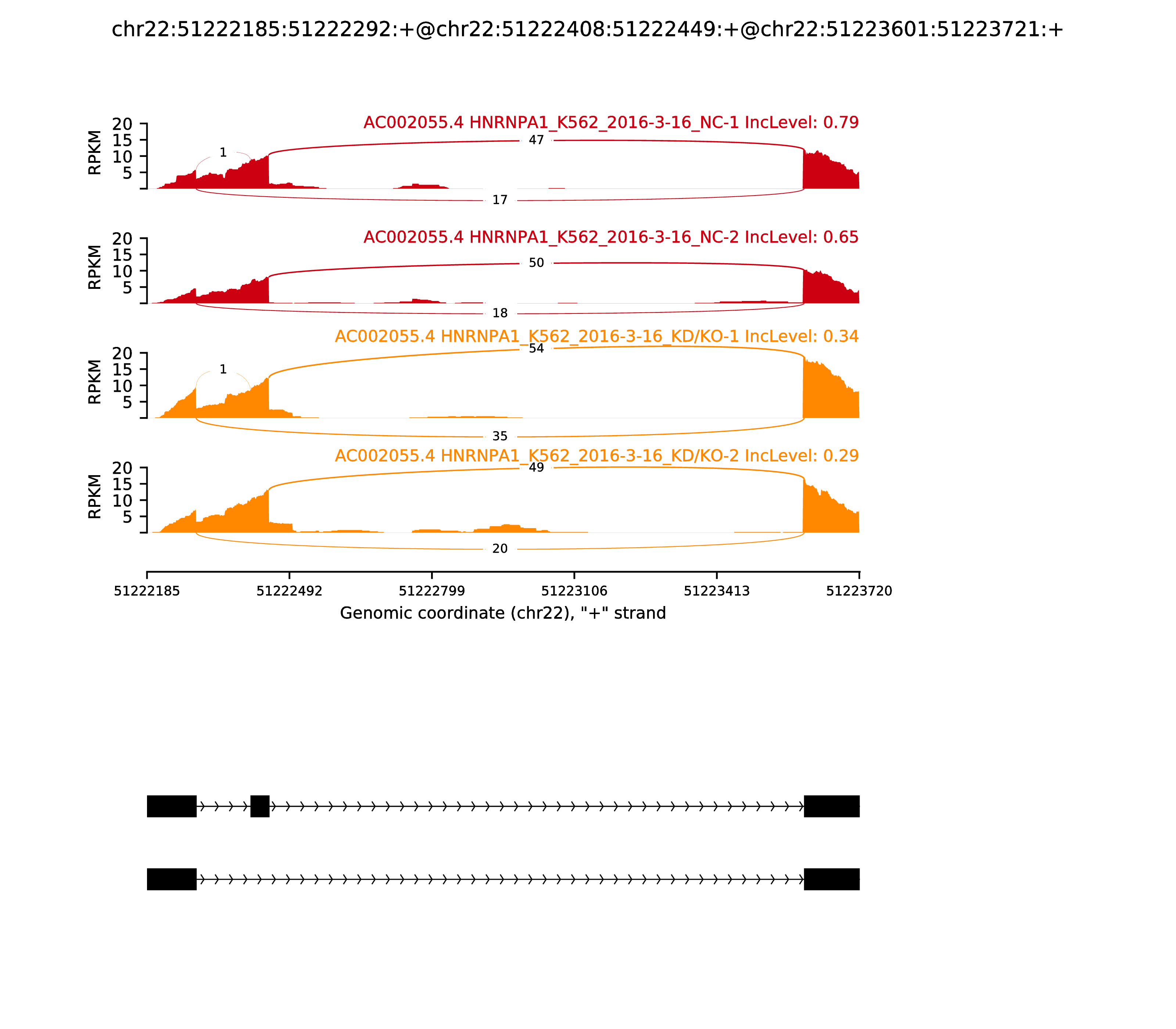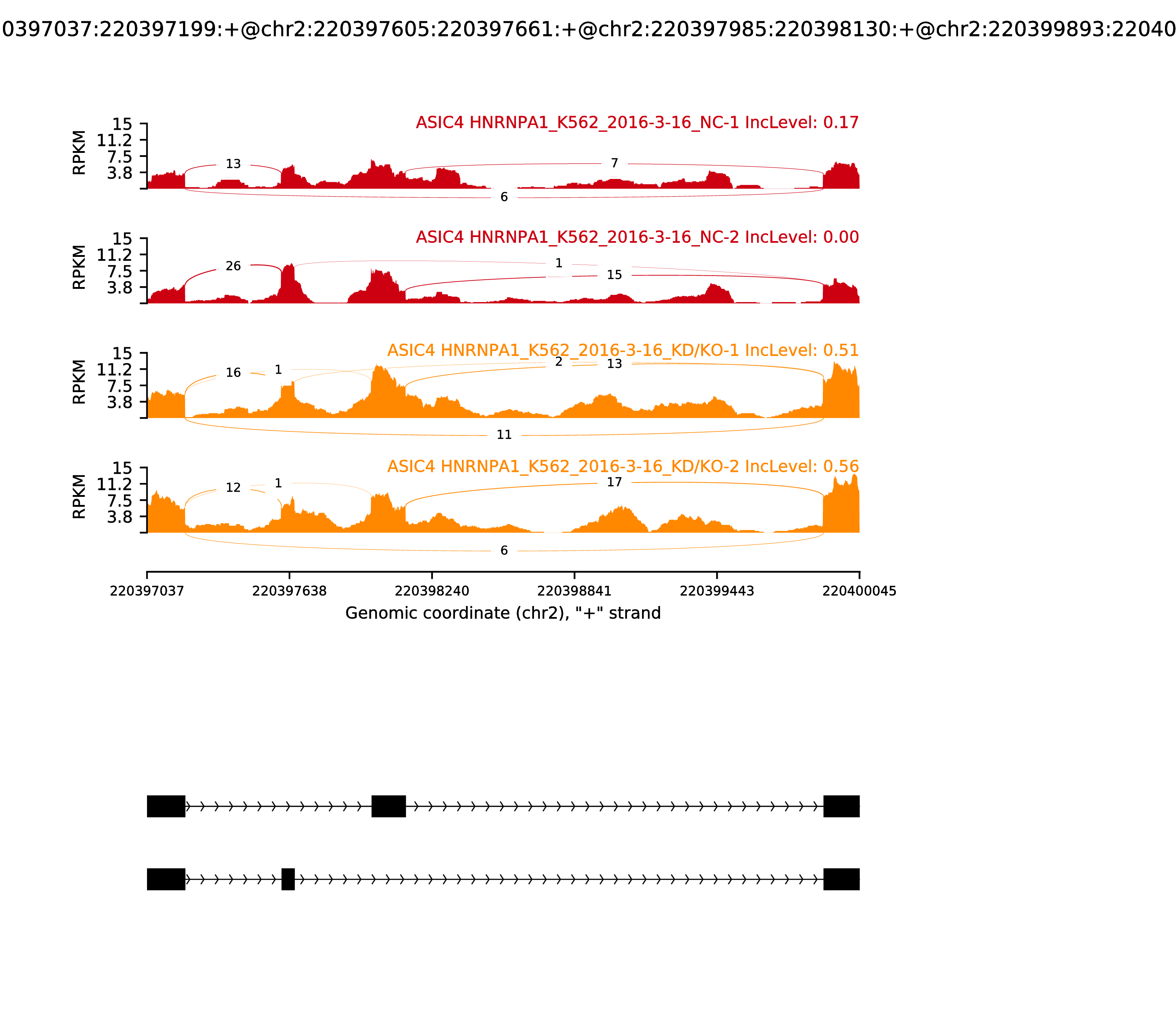 | chr4 | 39549693 | T | C | 0.00170 | UGDH-AS1,SMIM14 | +,- | FALSE | AluSp | SINE,Alu |