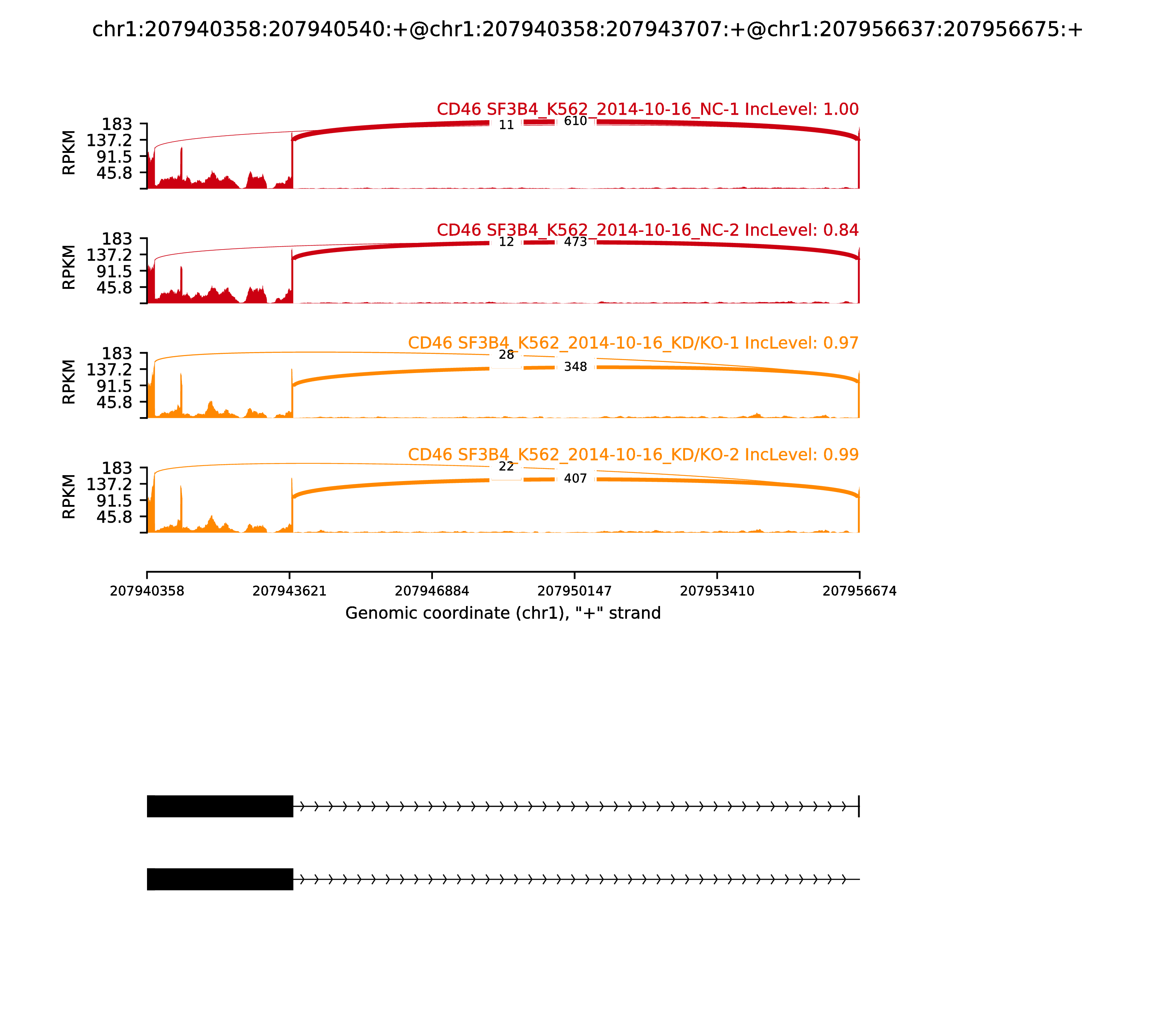 | chr1 | 109240642 | A | C | 0.00373 | PRPF38B | + | FALSE | ||