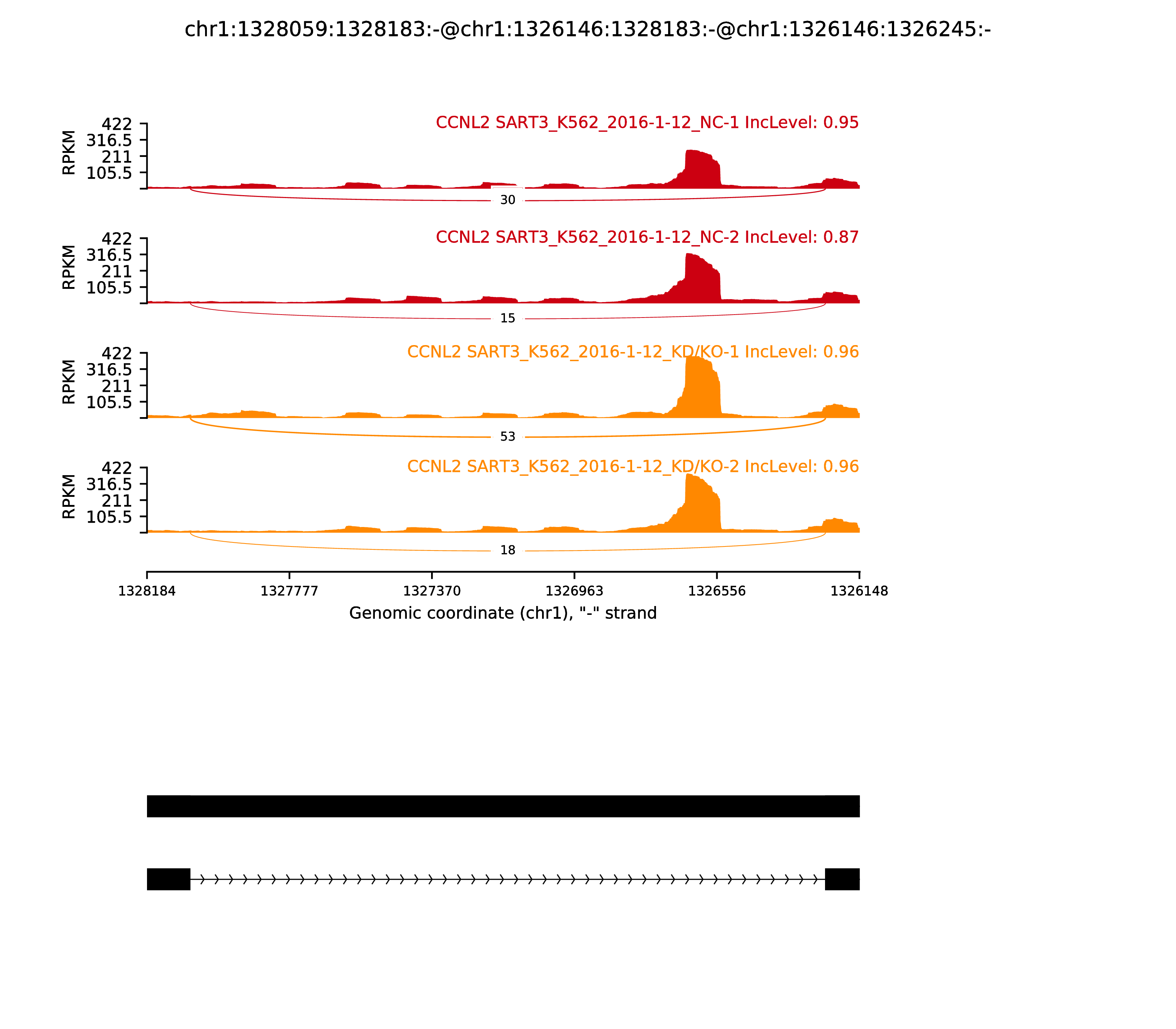 | chr1 | 44171144 | T | A | 0.00108 | KDM4A-AS1,KDM4A | +,- | FALSE | ||